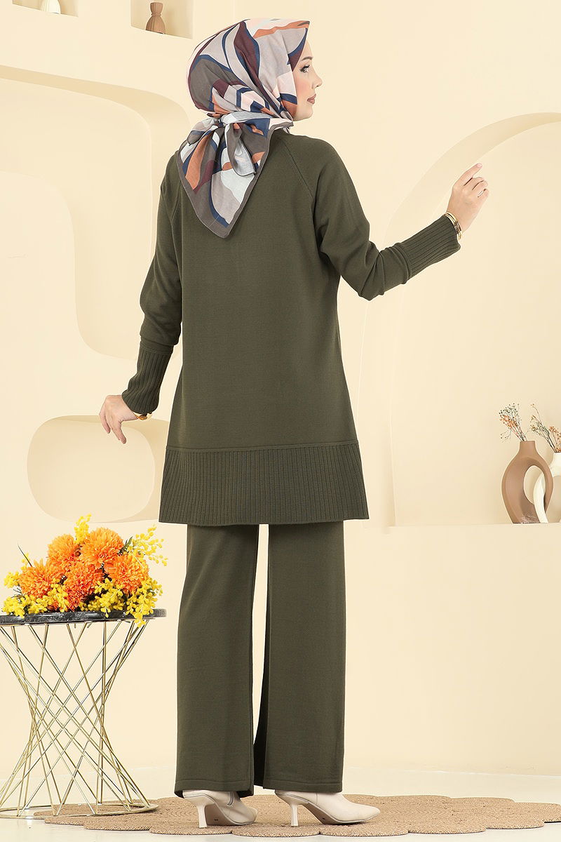 Akıllı ve şık bir tercih olan Aksesuarlı Düğmeli Triko Takım, sonbahar ve kış aylarınızı ısıtmak için tasarlandı. Hassas yıkama özelliği ve 30 derecede yıkanabilme kolaylığı sunan bu tesettür ürünü, rahatlığı ve şıklığı bir arada sunuyor. Triko kumaştan üretilen set, bisiklet yaka tunik ve lastik bel pantolondan oluşuyor. Aksesuar olarak eklenen düğmelerle stilinizi tamamlayın.