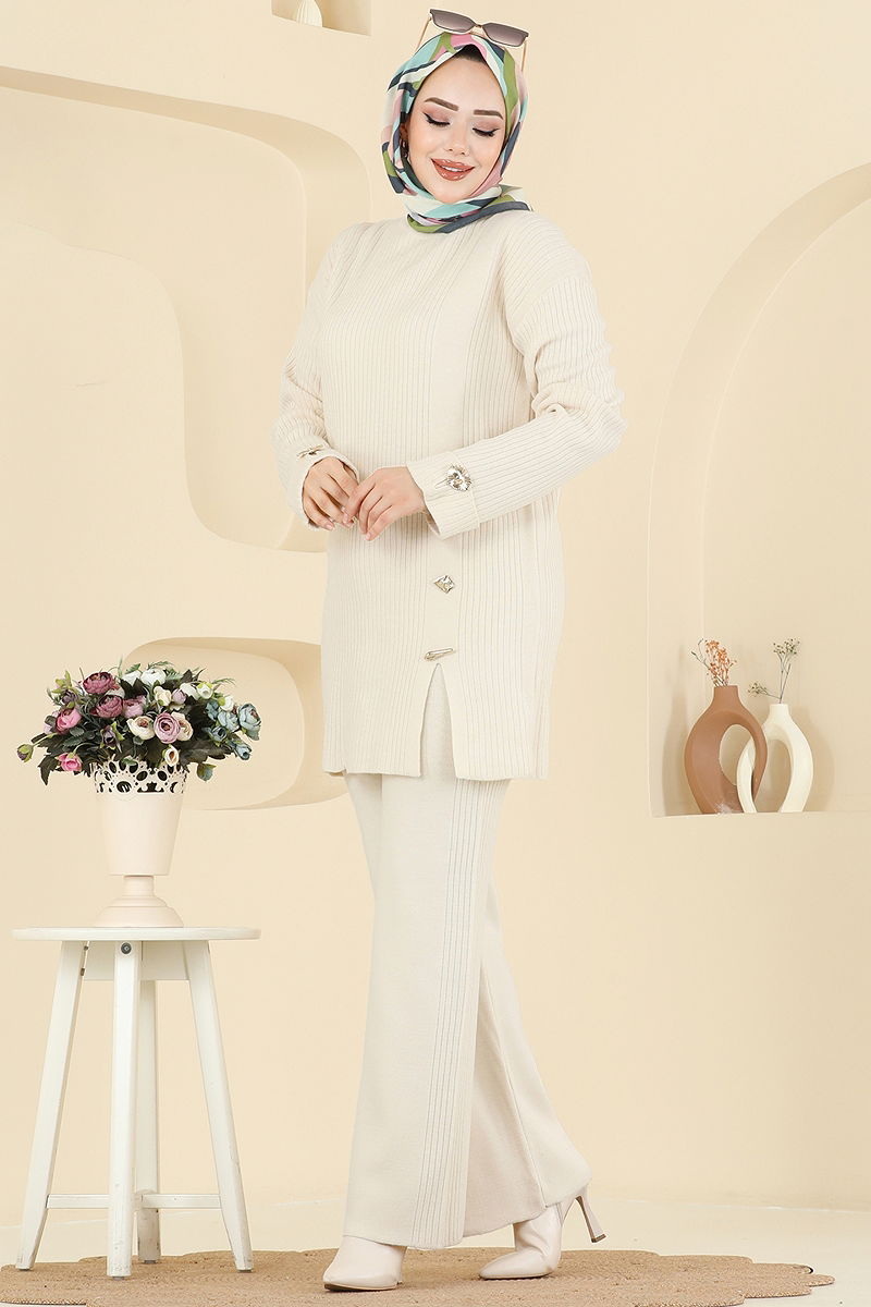 Aksesuar Düğmeli Triko Takım 8052OZN1046 Ekru