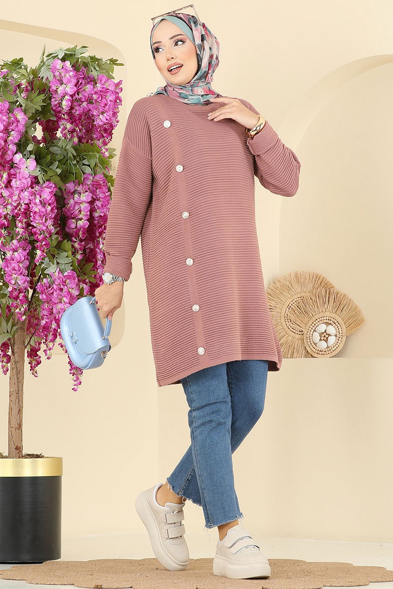 Aksesuar Düğmeli Triko Tunik 2735AYD574 Gül Kurusu