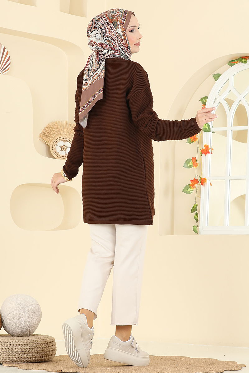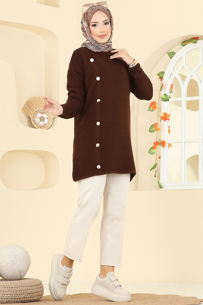 Aksesuar Düğmeli Triko Tunik 2735AYD574 Kahve