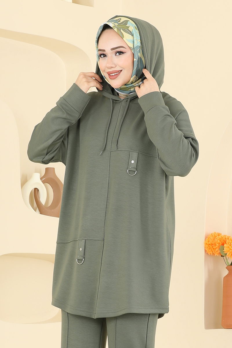 Ürün Özelliği : Yeni sezon tesettür moda ürünüdür. Yaka bağcık aktiftir. Ürün Kapşonlu yakadır. Astarsızdır. Kapşon ürüne dikilidir. Pantolon beli lastiklidir.Konsept fotoğraf çekimlerinden dolayı üründe ton farklılığı olabilir.