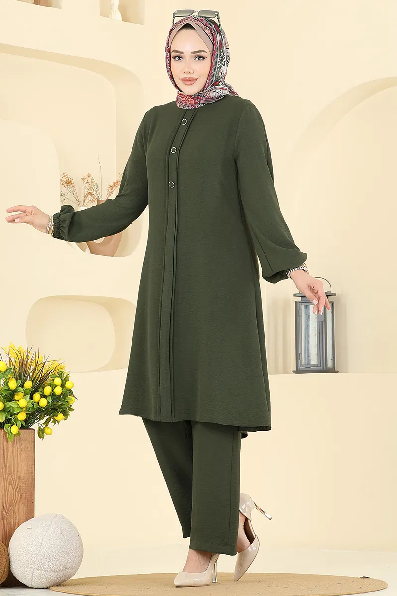 Aksesur Düğmeli Aerobin Takım Koyu Haki