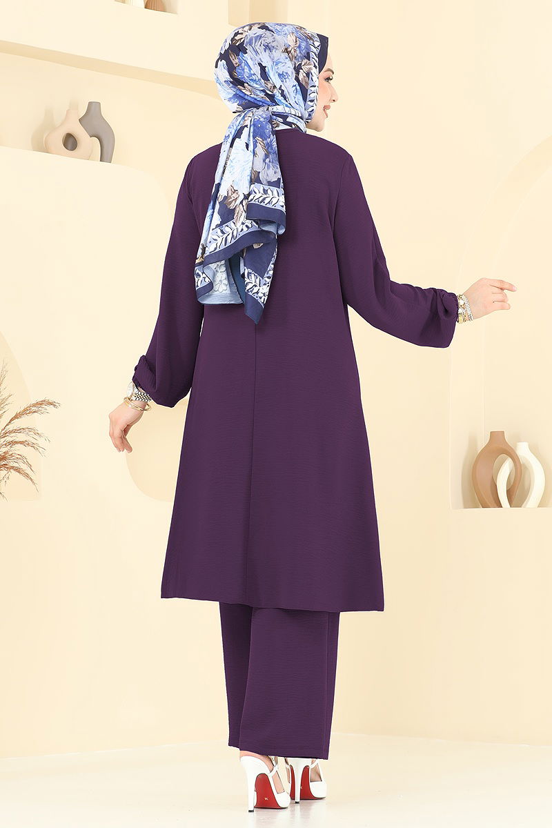 Ürün Özelliği : Yeni sezon tesettür moda ürünüdür. Ürün Bisiklet yakadır. Astarsızdır. Düğmeler aksesuardır. Pantolon beli lastiklidir. Manşeti lastiklidir. Konsept fotoğraf çekimlerinden dolayı üründe ton farklılığı olabilir.