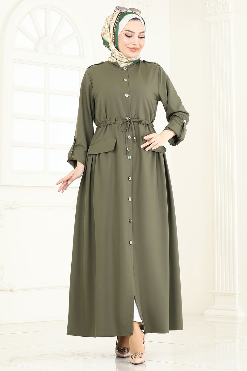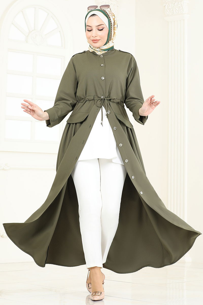 Ürün Özelliği : Yeni sezon tesettür moda ürünüdür. Ürün Yarım Hakim yakadır. Ürün Önden düğmelidir. Astarsızdır. Apolet Düğmeleri aksesuardır. Cep detayları aksesuardır. Beli bağcıklıdır. Konsept fotoğraf çekimlerinden dolayı üründe ton farklılığı olabilir.