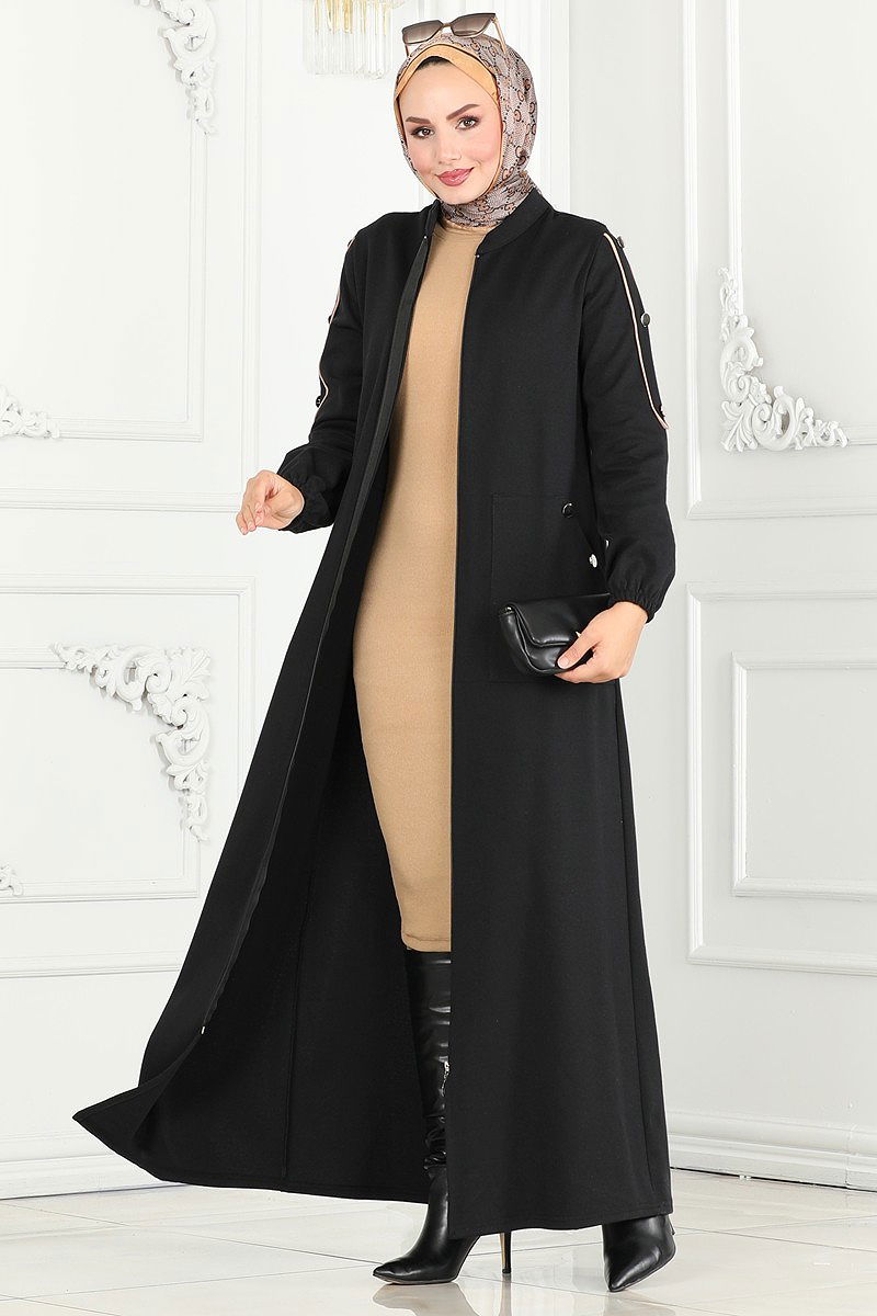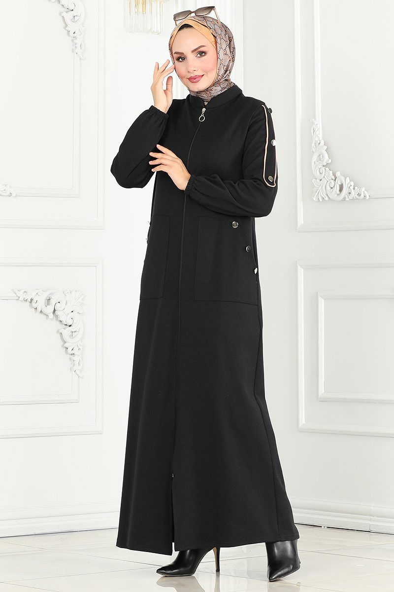 Biye Detailed Tivit Ferace is a fashion item for the autumn and winter seasons. It should be washed without squeezing at 30 degrees. It is made of first-class Tivit fabric. The product features a half mandarin collar and is unlined. It has a front zipper and decorative buttons. There is a pocket detail and elastic cuffs. (The product on the model is size 38.)