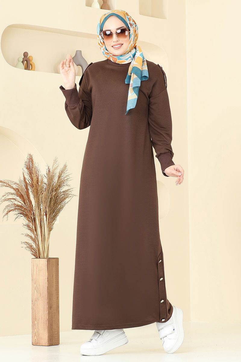 Apolet Düğmeli Elbise 13367ETT926 Kahve