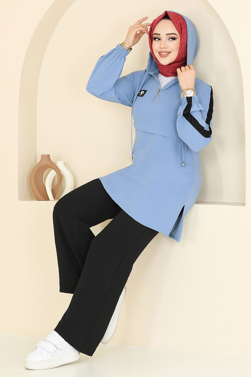 Ürün Özelliği : Yeni sezon tesettür moda ürünüdür. Önden kullanılabilir fermuarı bulunmaktadır. Ürün Kapşonlu yakadır. Tunik yandan yırtmaçlıdır.. Astarsızdır. Arma detayı dikilidir. Kapşon ürüne dikilidir. Pantolon beli lastiklidir. Manşeti lastiklidir. Konsept fotoğraf çekimlerinden dolayı üründe ton farklılığı olabilir.