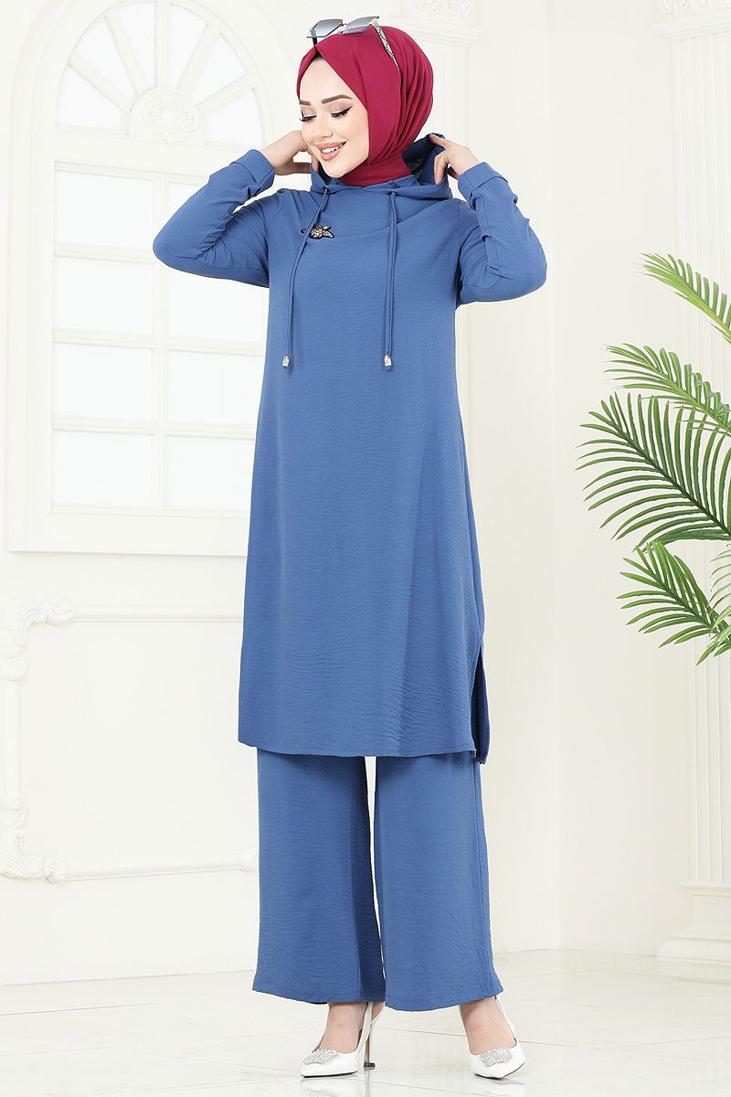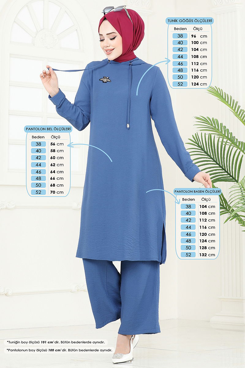 Ürün Özelliği : Yeni sezon tesettür moda ürünüdür. Ürün Kapşonlu yakadır. Tunik yandan yırtmaçlıdır.. Astarsızdır. Arma detayı yapıştırmadır. Kapşon ürüne dikilidir. Pantolon beli lastiklidir. Konsept fotoğraf çekimlerinden dolayı üründe ton farklılığı olabilir.