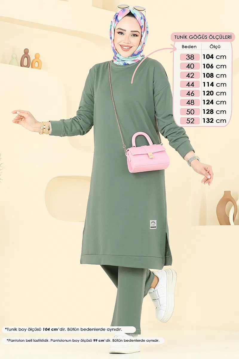 Ürün Özelliği : Yeni sezon tesettür moda ürünüdür. Ürün kafadan giyilmektedir. Ürün Bisiklet yakadır. Tunik yandan yırtmaçlıdır.. Astarsızdır. Arma detayı dikilidir. Pantolon beli lastiklidir. Konsept fotoğraf çekimlerinden dolayı üründe ton farklılığı olabilir.