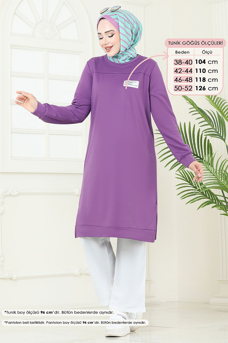 Ürün Özelliği : Yeni sezon tesettür moda ürünüdür. Ürün kafadan giyilmektedir. Ürün Bisiklet yakadır. Tunik yandan yırtmaçlıdır.. Astarsızdır. Arma detayı dikilidir. Pantolon beli lastiklidir. Konsept fotoğraf çekimlerinden dolayı üründe ton farklılığı olabilir.