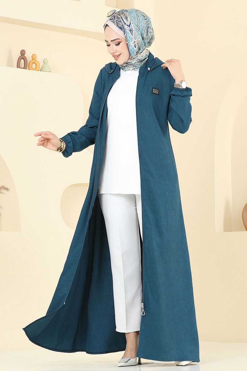 Ürün Özelliği : Yeni sezon tesettür moda ürünüdür. Ürün Bebe yakadır. Astarsızdır. Ürün Önden fermuarlıdır. Etek düğmeleri aksesuardır. Kapşon ürüne dahildir, isteğe bağlı kullanılmayabilir. Cep mevcuttur. Manşet lastiklidir. Konsept fotoğraf çekimlerinden dolayı üründe ton farklılığı olabilir.