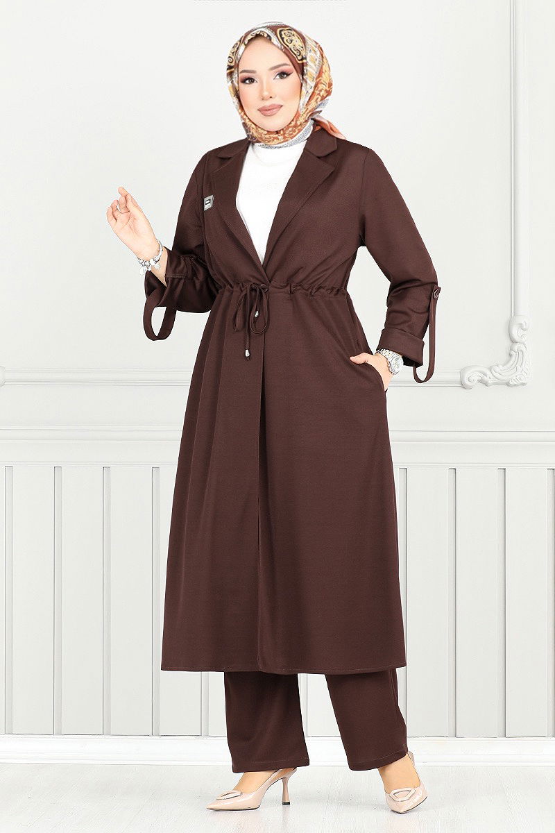 Arma Detay Tesettür Takım Kahve