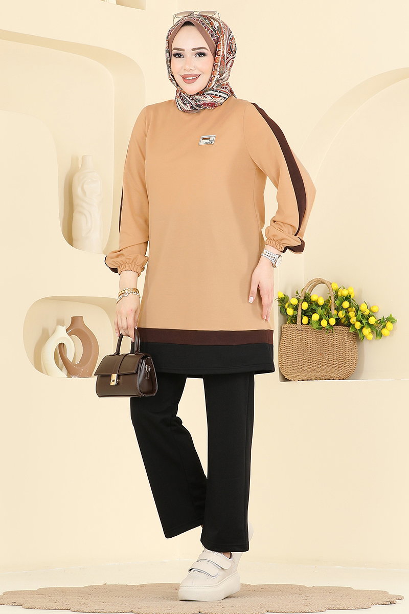Ürün Özelliği : Yeni sezon tesettür moda ürünüdür. Ürün Bisiklet yakadır. Astarsızdır. Pantolon beli lastiklidir. Manşet lastiklidir.Konsept fotoğraf çekimlerinden dolayı üründe ton farklılığı olabilir.