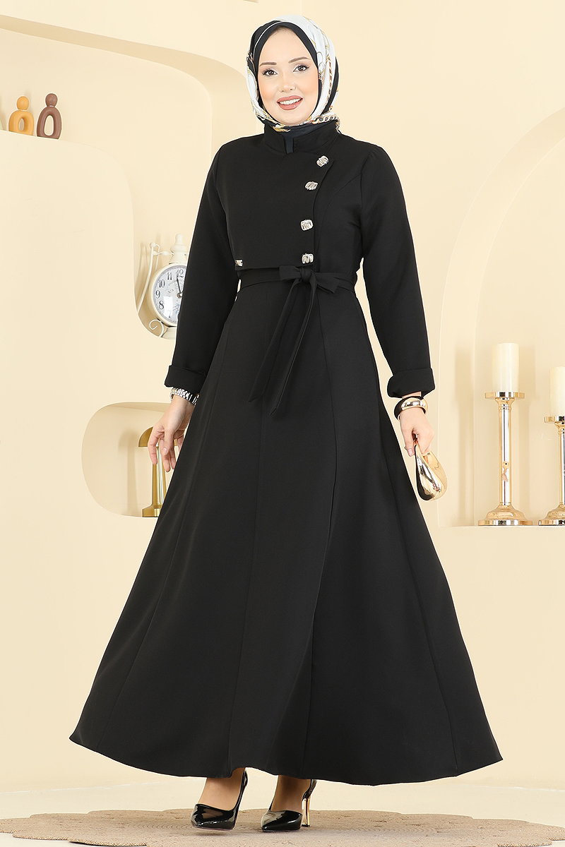 Arma Detaylı Kuşaklı Elbise 2838SLK540 Siyah