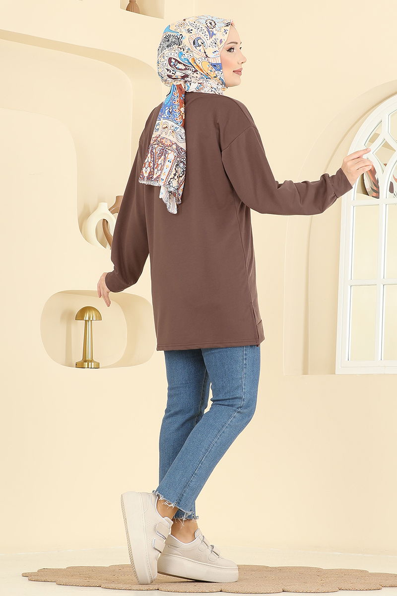 Arma Detaylı Spor Tunik, tesettür giyimde şıklığı ve konforu bir arada sunuyor. Dört mevsim rahatlıkla kullanabileceğiniz bu tunik, özel iki iplik kumaşından üretilmiş olup, hassas yıkamaya uygun şekilde 30 derecede yıkanabilir. Bisiklet yaka tasarımı, yandan yırtmaç detayları ve şık arma süslemesi ile göz dolduruyor. Modelin üzerindeki 38 beden olup, astarsız olarak tasarlanmıştır.