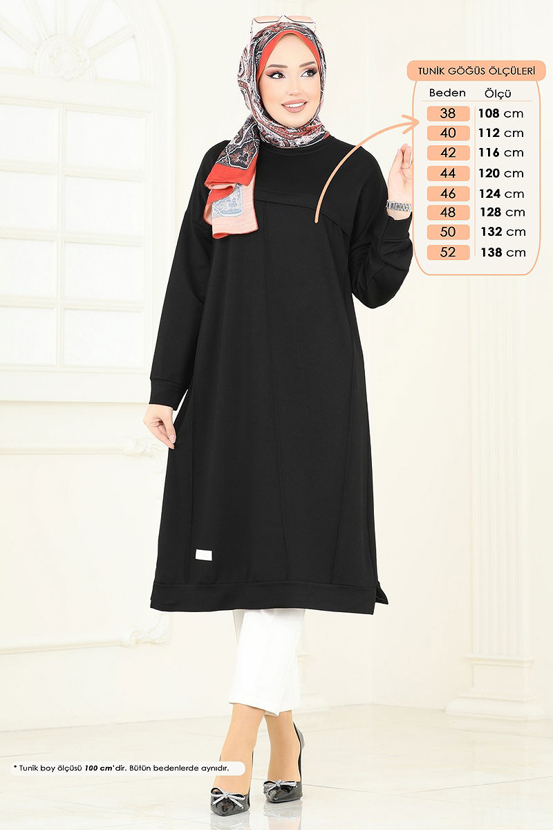 Arma Detaylı Tesettür Tunik Siyah