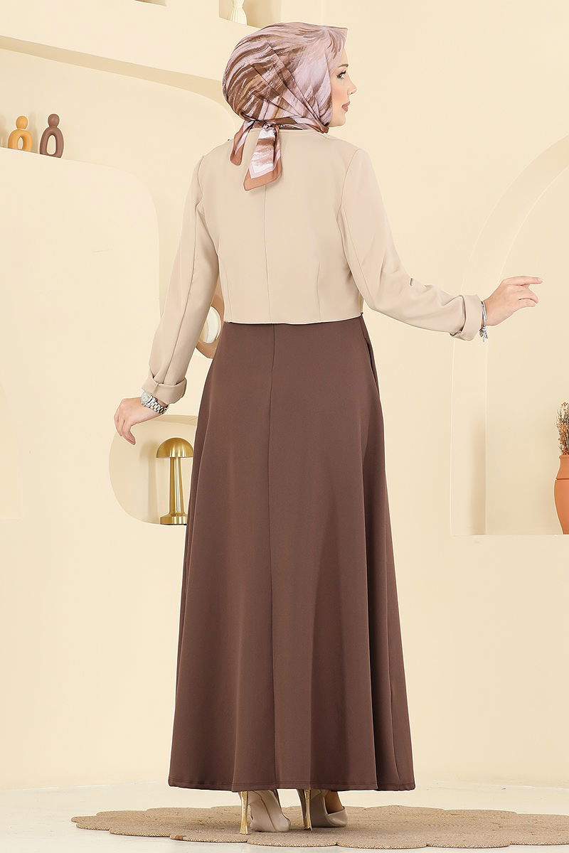 Asimetrik Ceketli Dabıl Takım 2782SL432 Taş&Kahve