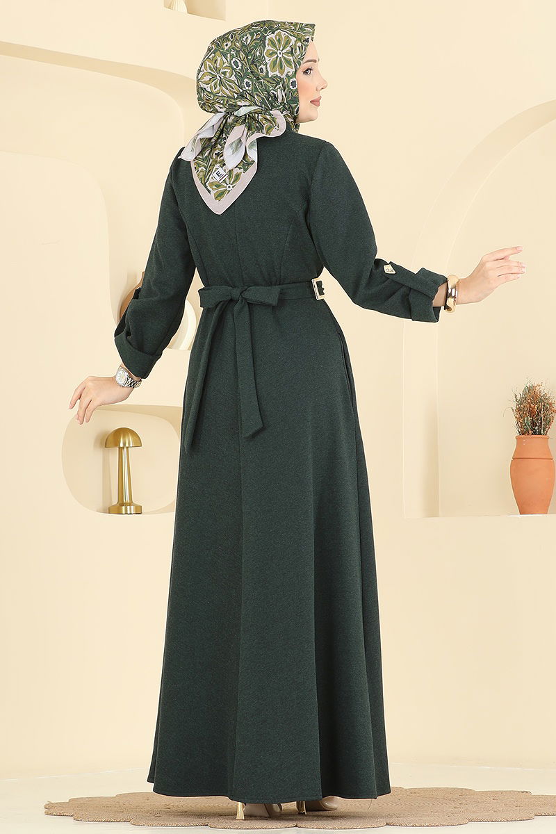 Asimetrik Düğmeli Tivit Elbise 2770SL432 Zümrüt
