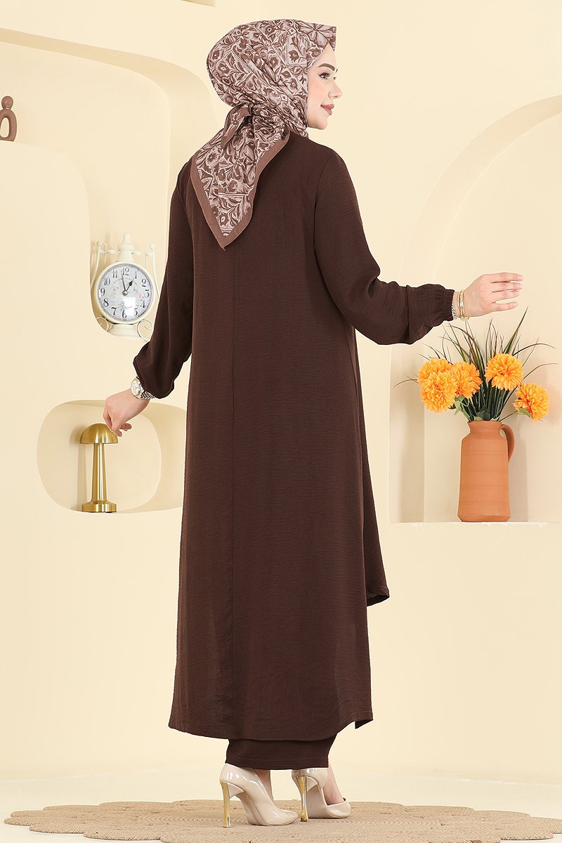 Asimetrik Kesim Aerobin Takım Koyu Kahve
