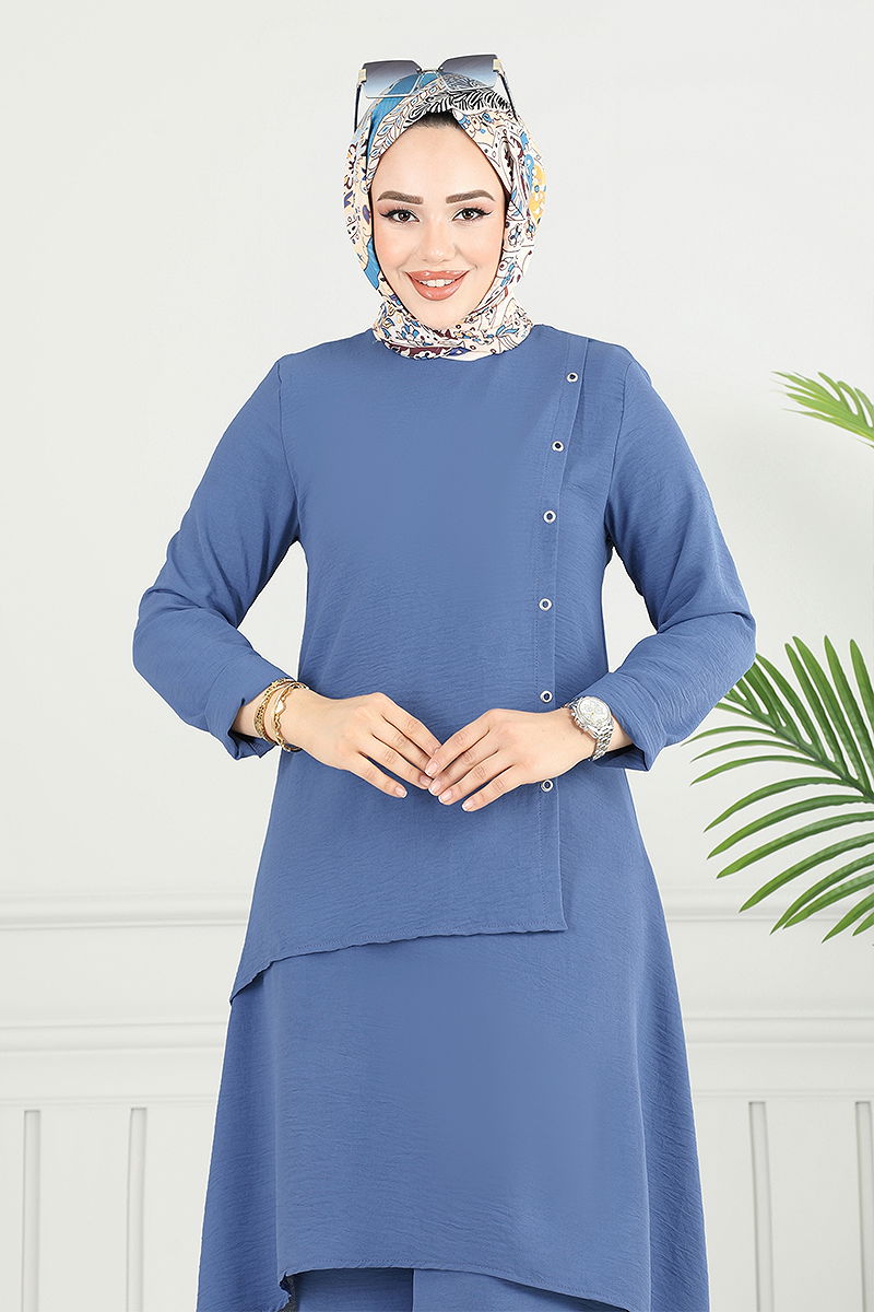 Asimetrik Kesim Tesettür Takım 3119HBS932-M İndigo