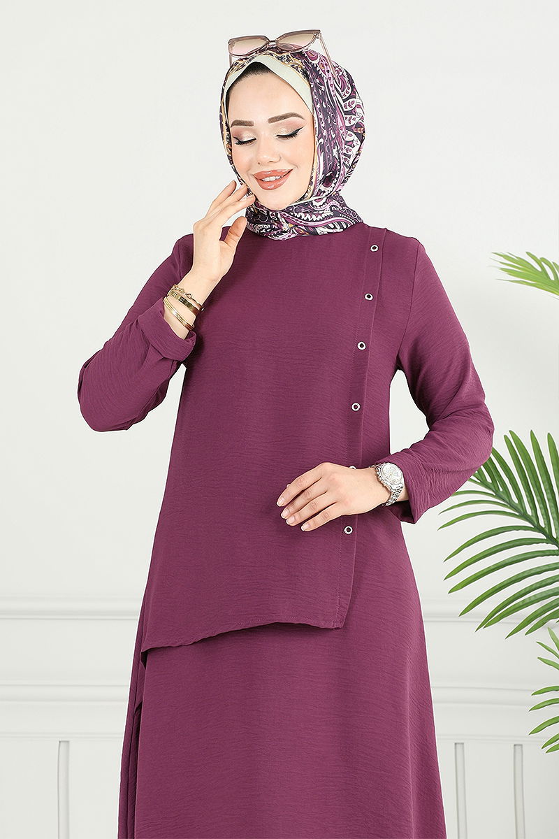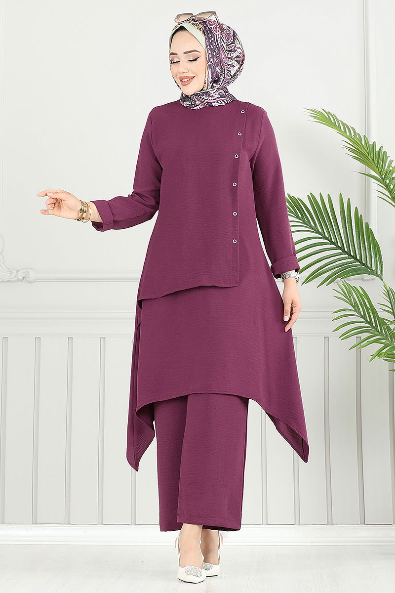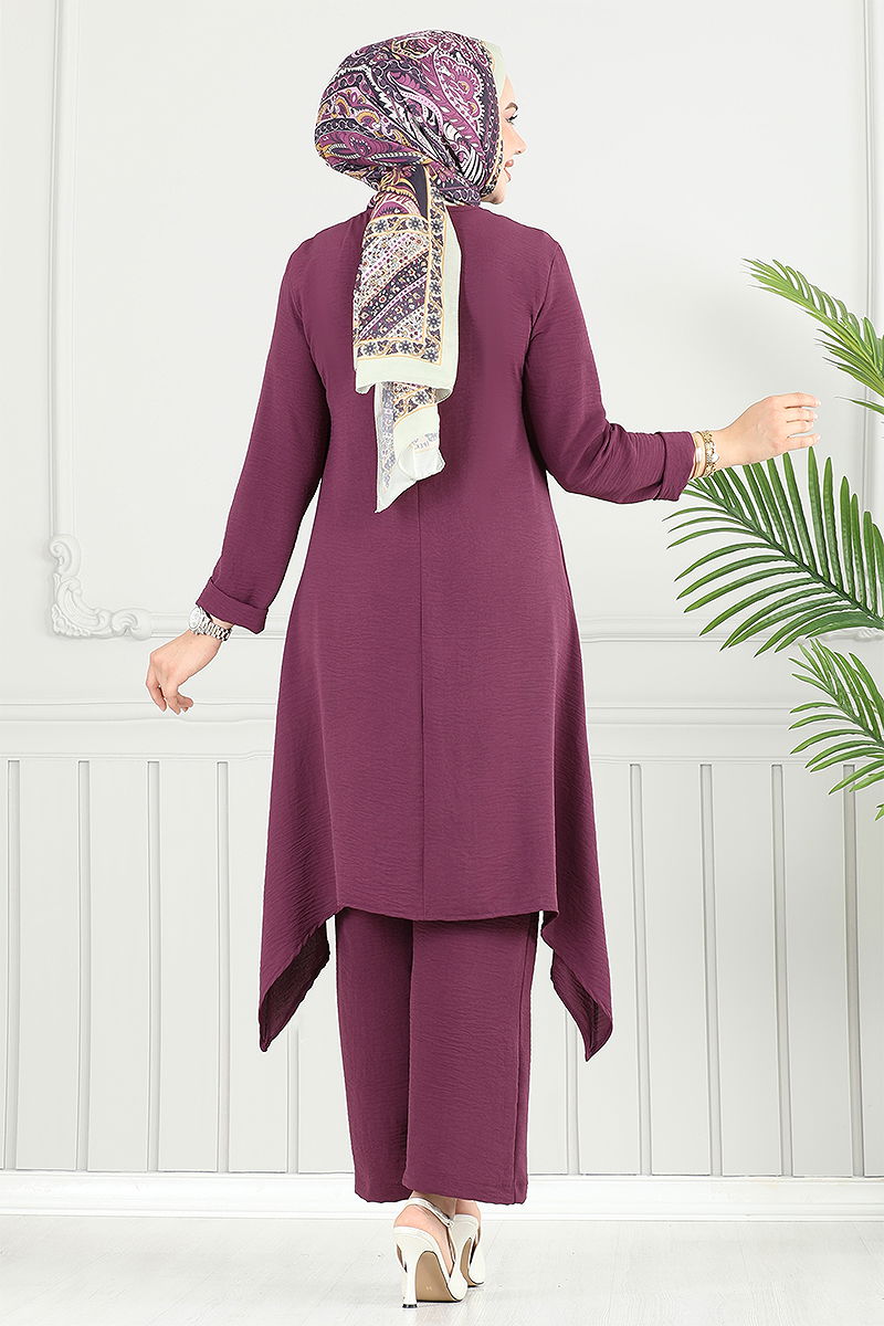 Asimetrik Kesim Tesettür Takım 3119HBS932-M Mürdüm