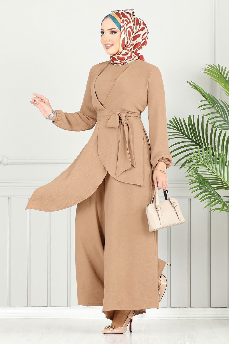 Ürün Özelliği : Yeni sezon tesettür moda ürünüdür. Ürün Bisiklet yakadır. Tunik yandan yırtmaçlıdır.. Astarsızdır. Ürün Sırttan fermuarlıdır. Kemer ürüne dahildir, isteğe bağlı kullanılmayabilir. Pantolon beli lastiklidir. Manşet lastiklidir. Konsept fotoğraf çekimlerinden dolayı üründe ton farklılığı olabilir.
