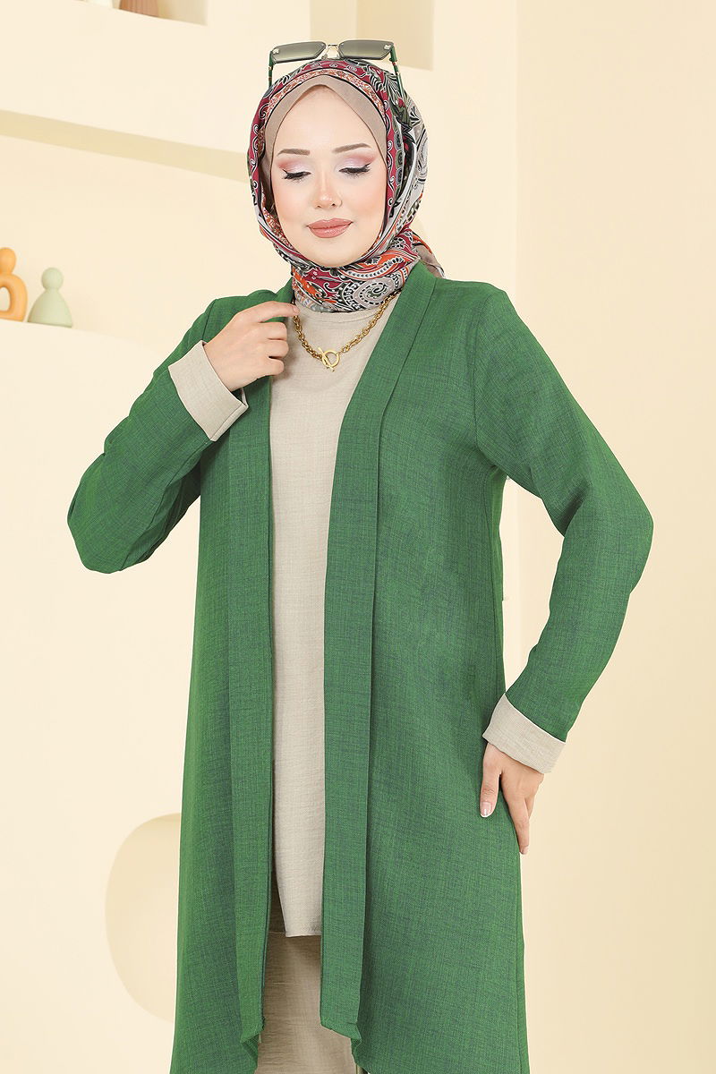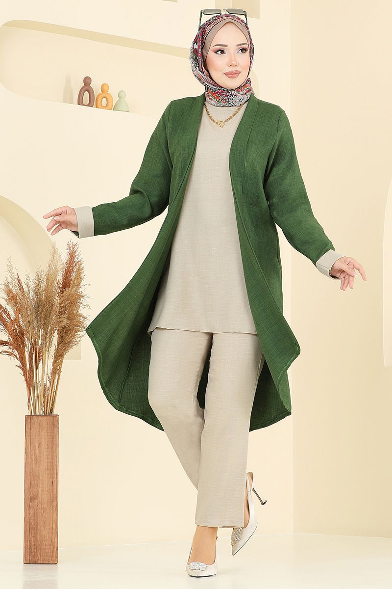 Asimetrik Kesim Üçlü Takım Yeşil&Taş
