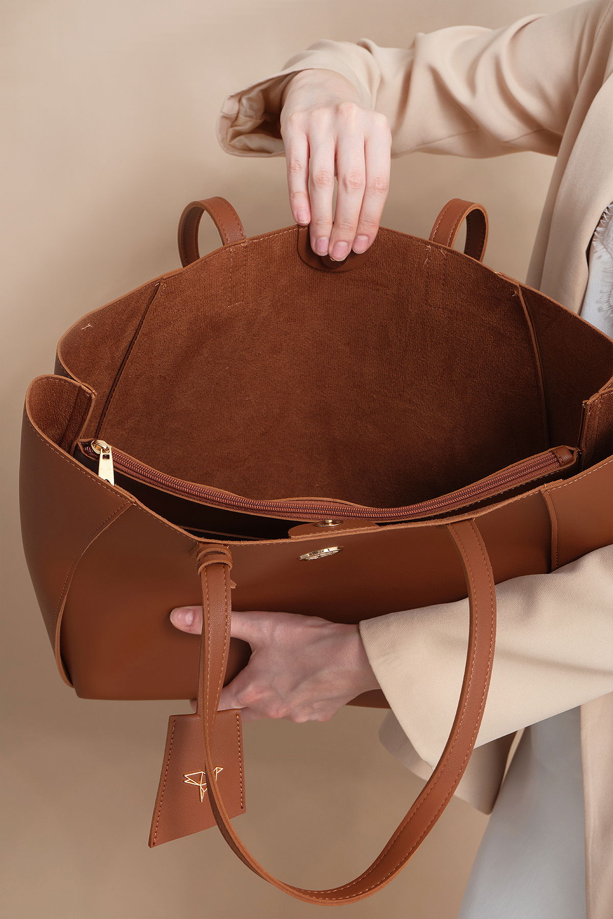Product Name: Synthetic Leather Large Shoulder Bag, a modest wear model. This bag, made from synthetic leather, can be used throughout all four seasons. It features a fixed strap and complements both casual and elegant styles. Ideal for short trips, school, carrying your child’s belongings, work, or sports, it has a spacious interior. The bag comes with a magnetic closure and includes one zippered and one non-zippered internal pocket. The suede-lined interior adds extra durability.