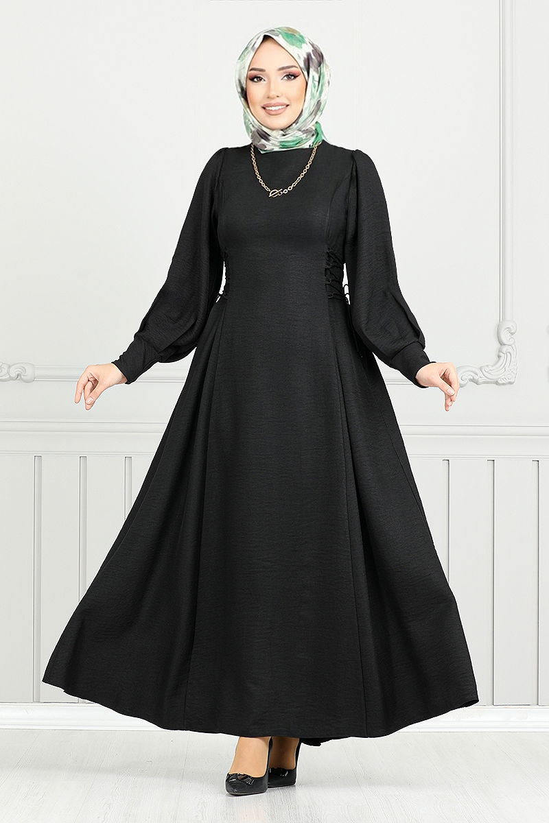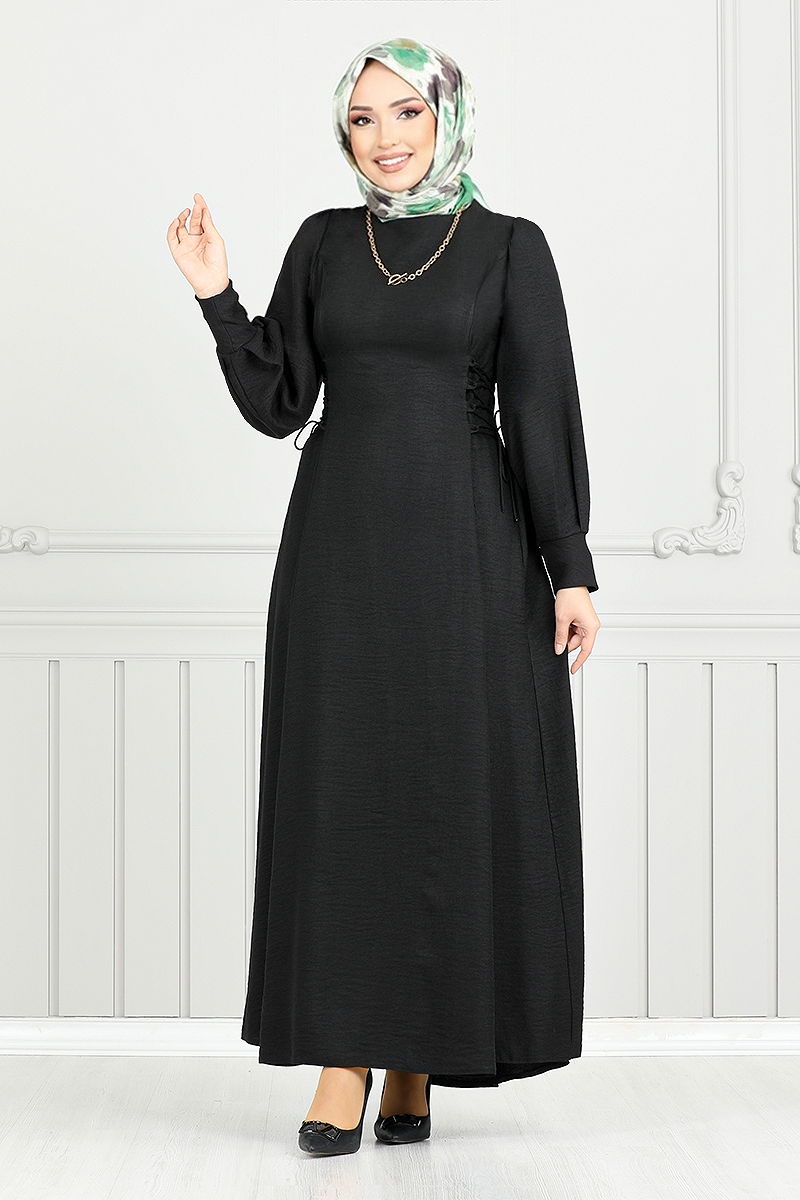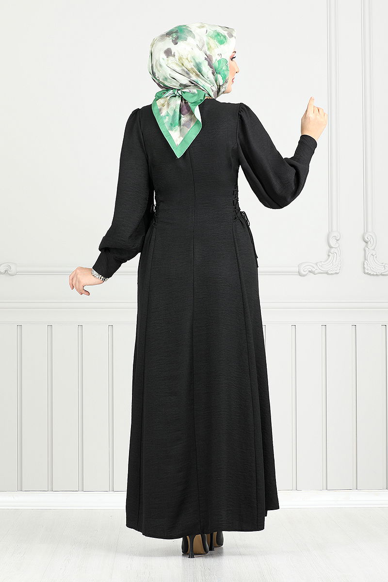 Bağcık Detaylı Elbise 15962BSK984-M Siyah