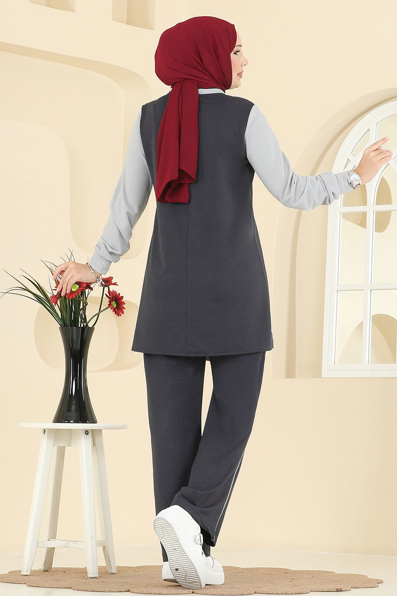 Bağcık Taş Detaylı Takım Antrasit&Gri