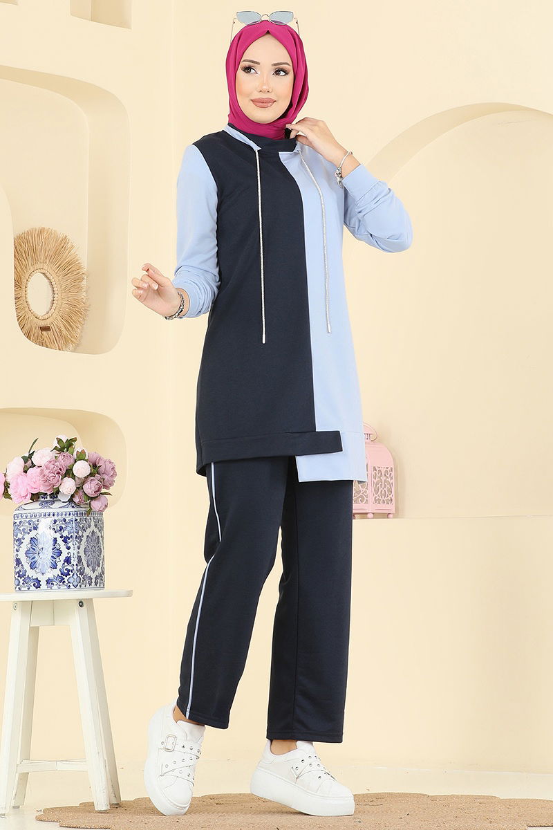 Bağcık Taş Detaylı Takım KOMBİN modeli, dört mevsim rahatlıkla kullanabileceğiniz şık bir tesettür ürünüdür. Hassas giysiler için önerilen 30 derecede yıkanabilme özelliği sayesinde, uzun ömürlü kullanım sunar. Vorteks kumaştan üretilmiş olan bu takım, yarım hakim yaka tasarımı ile dikkat çeker. Astarsız yapısı, taş detaylı bağcıkları ve lastikli pantolon beli ile hem rahat hem de şık bir görünüm sağlar.