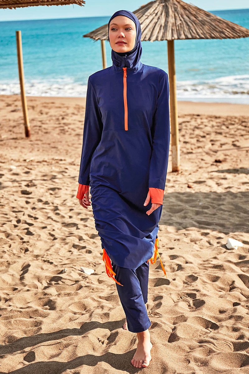 Ürün Özelliği : Yeni sezon tesettür moda ürünüdür. Ürün su itici özelliğe sahiptir.Sudan çıktığınızda kısa sürede kurur ve üzerinize yapışmaz. Önden kullanılabilir fermuarı bulunmaktadır. Ürün Hakim yakadır. Astarsızdır. Ürün beli dikişlidir. Ürün bağcıklıdır. Alt mayo lastiklidir. Konsept fotoğraf çekimlerinden dolayı üründe ton farklılığı olabilir.