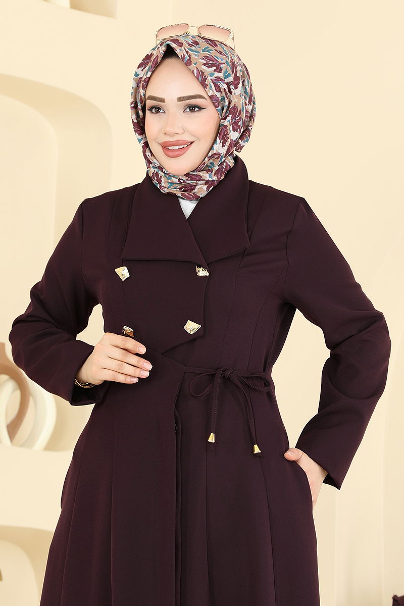 Bağlama Detaylı Dabıl Ferace 2814SL432 Koyu Mürdüm