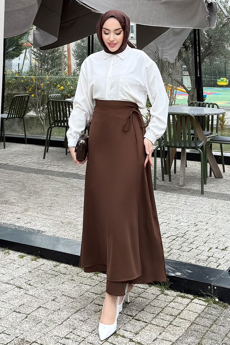 Bağlama Detaylı Krep Etek 4697ALGK1170 Kahve