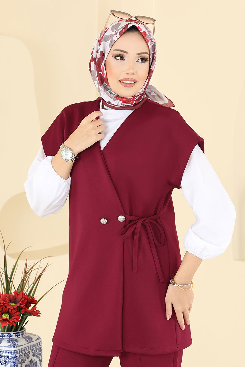 Ürün Özelliği : Yeni sezon tesettür moda ürünüdür. Ürün kap koldur. Yelek iç kısımda bağcık bulunmaktadır. Ürün V Yaka yakadır. Astarsızdır. Düğmeler aksesuardır. Bluz ürüne dahil değildir. Ürün kullanım amacını göstermek için bluz ile örnek kombin yapılmıştır. Pantolon beli lastiklidir.Konsept fotoğraf çekimlerinden dolayı üründe ton farklılığı olabilir.