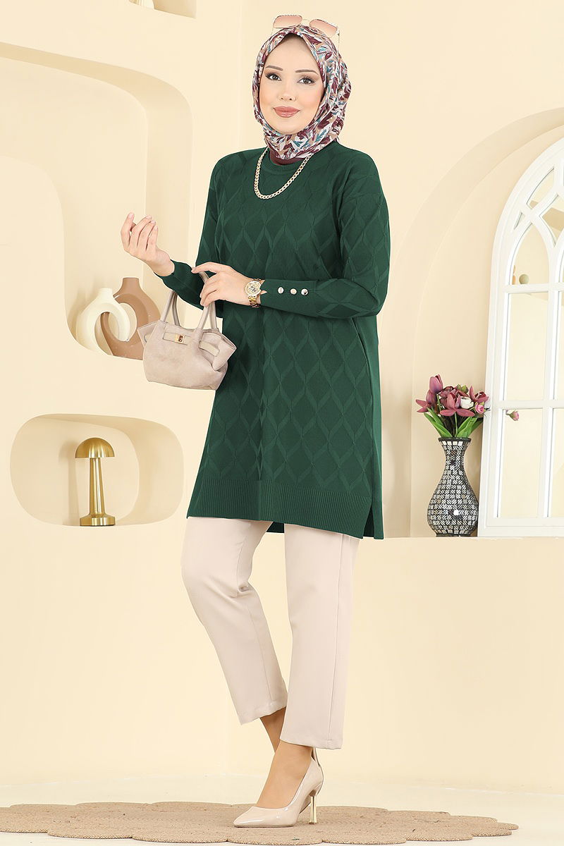 Baklava Desen Merserize Tunik 3288UZ662 Zümrüt