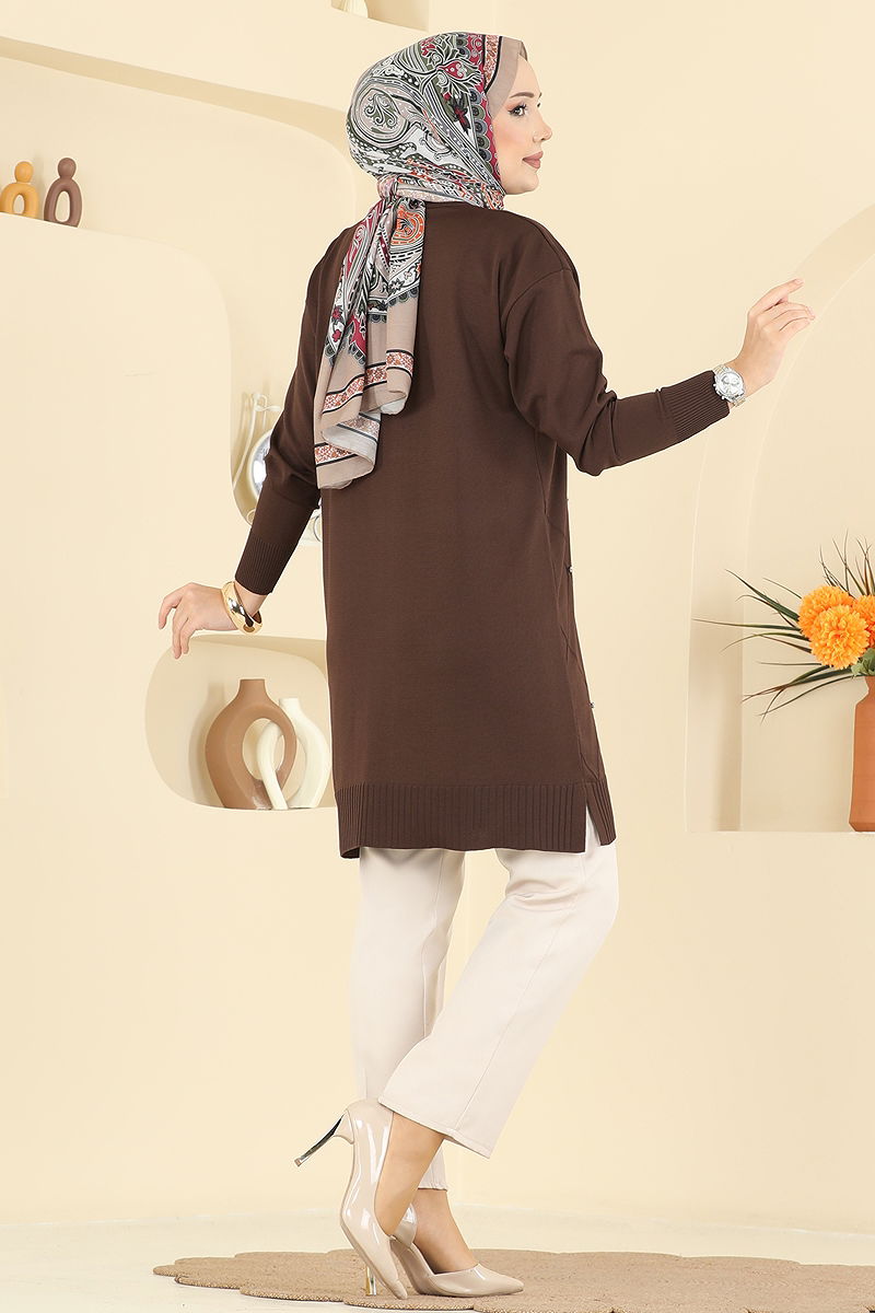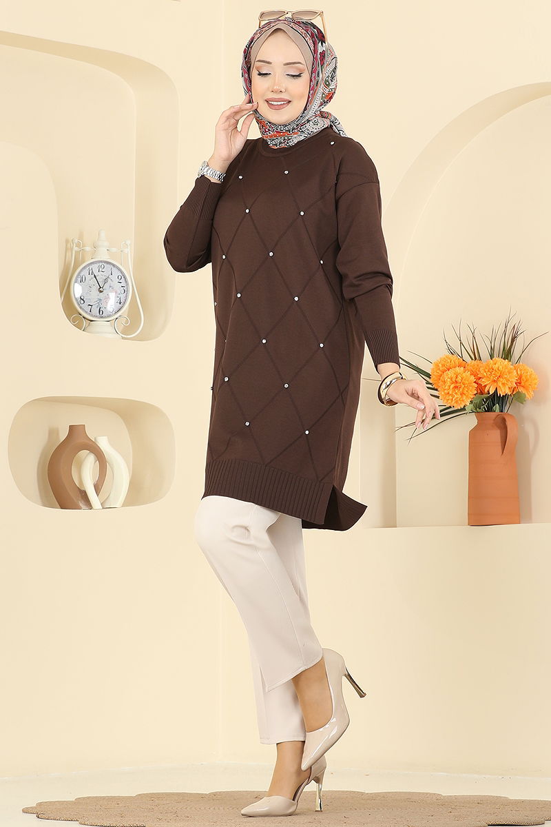 Baklava Desenli Triko Tunik 3225UZ662 Kahve