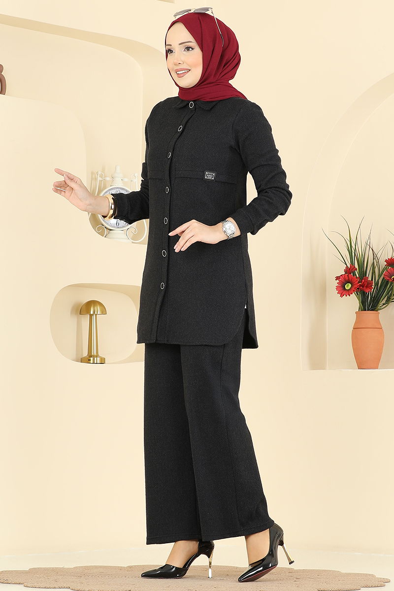 Balıksırtı Düğmeli 2 li Takım 24095UKBK1160 Siyah