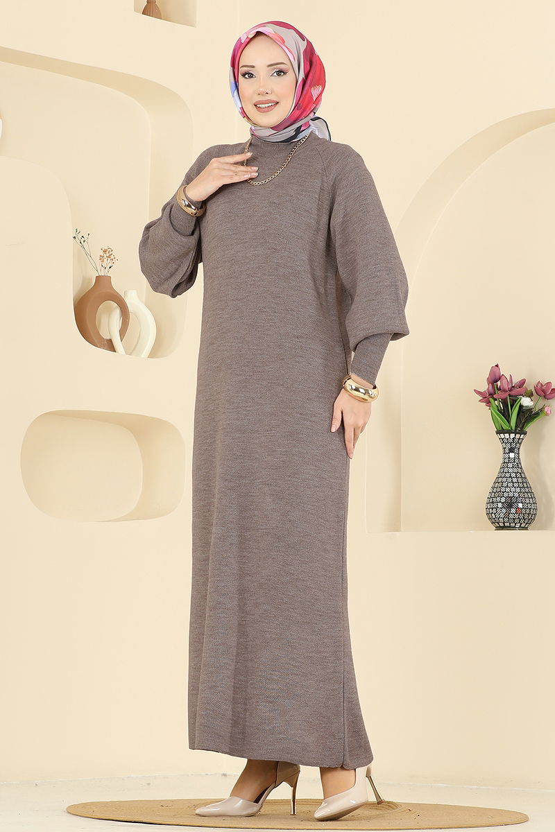 Yeni sezonun vazgeçilmezi Balon Kol Detaylı Elbise ile stilinizi bir adım öne taşıyın! Bu özel tasarım elbise, tesettür giyimde şıklığı ve konforu bir araya getiriyor. Sonbahar ve kış ayları için ideal olan triko kumaşı, soğuk günlerde sizi sıcak tutarken şık görünmenizi sağlar. Yarım boğaz yaka ve kafadan geçmeli pratik tasarımı ile günlük kullanım için mükemmel bir seçim.