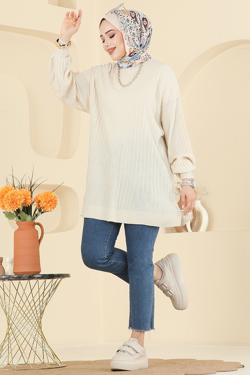 Balon Kol Triko Tunik 2199UZ662 Taş