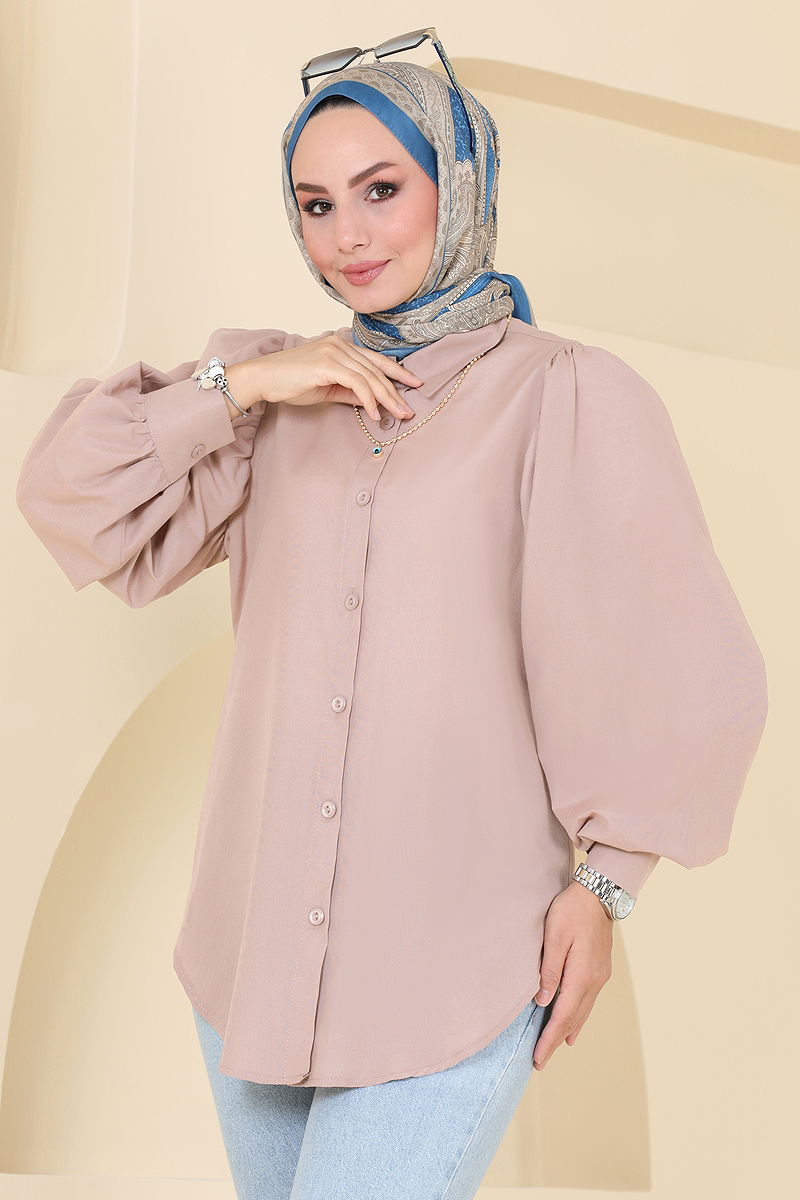 Balon Kollu Gömlek Bej