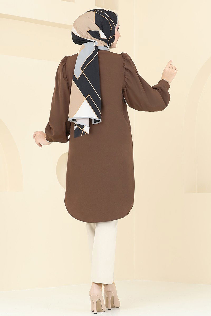 Balon Kollu Tesettür Tunik, dört mevsim rahatlıkla kullanabileceğiniz bir tesettür giyim ürünüdür. Hassas yıkama programında 30 derecede yıkanabilir özelliği ile pratik bir kullanım sunar. Kemer ve aksesuarlar ürüne dahil değildir. Terikoton kumaş kalitesiyle uzun ömürlüdür. Şık gömlek yaka ve ön düğmeli tasarımı, herhangi bir ortamda şıklığınızı korumanızı sağlar. Aktif göğüs cep ve manşet düğmeleri ile fonksiyonel bir kullanım vaat eder. Astarsız yapısıyla hafif ve konforlu bir deneyim sunar.