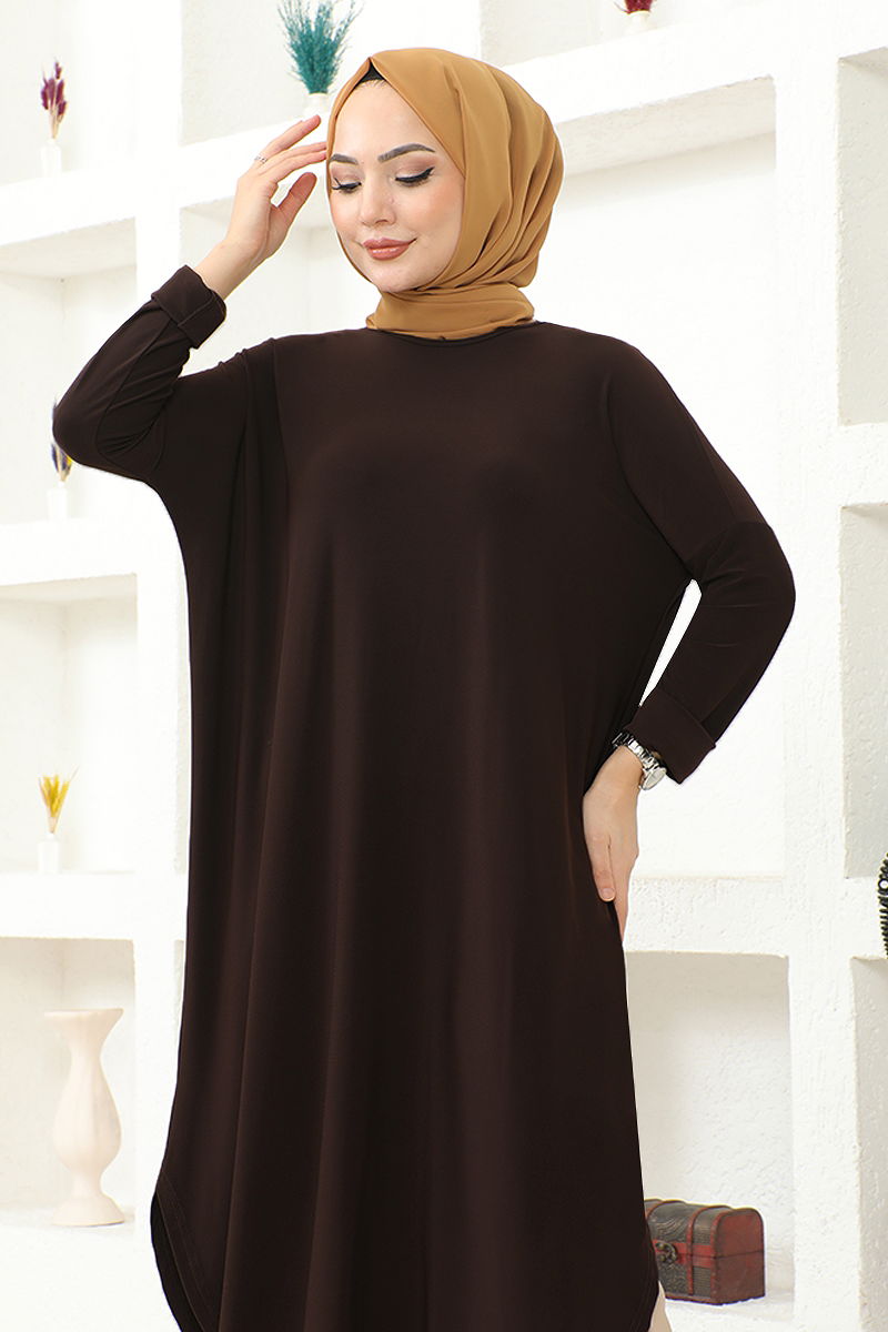 Basic Sandy Tunic offers elegance and comfort together in hijab clothing. The tunic model, which is suitable for all-season use, should be washed at 30 degrees without wringing and is made of first-class Sandy fabric. It adds elegance with its crew neck detail and offers a comfortable use with its unlined design. The product on the model is size 38. Color options include Rose Dried, Coffee, Mint, Petrol, Powder, Black, Vision. It offers an option suitable for everyone's style with standard size options.| SIZE | CHEST | LENGHT |