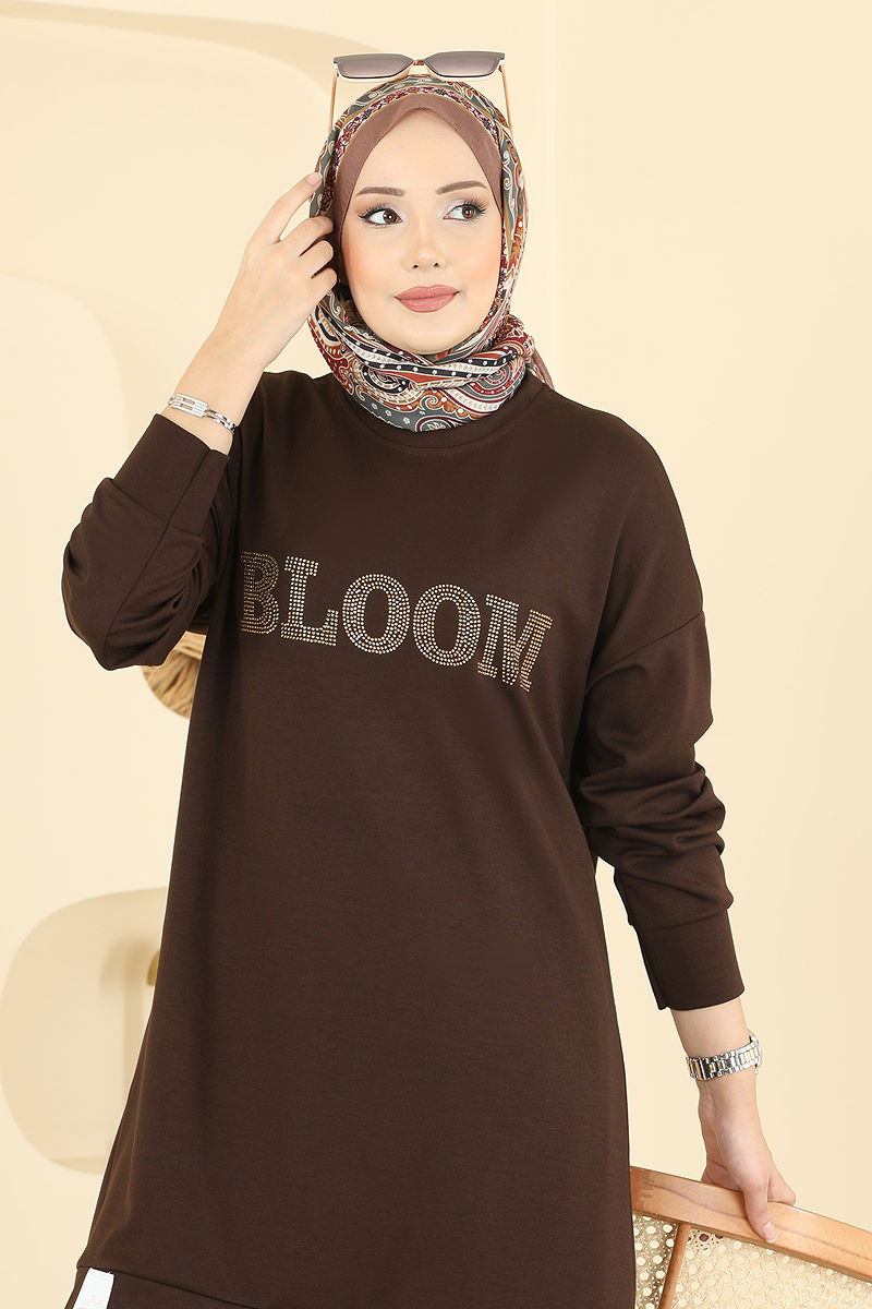 Baskı Detaylı Modal Takım 2779AYD574 Kahve