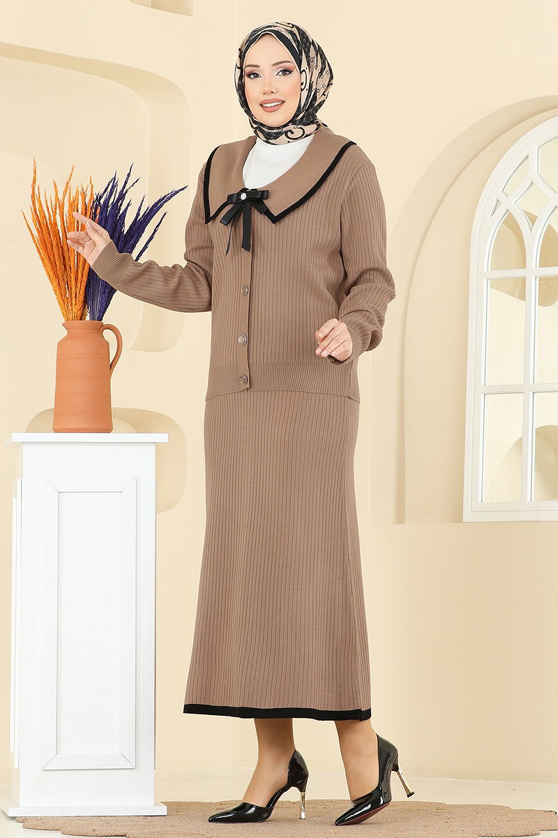 Bu şık ve rahat Bebe Yaka Triko Takım, sonbahar ve kış ayları için mükemmel bir seçimdir. Hassas yıkama seçeneği olan bu ürün, 30 derecede yıkanabilir. Triko kumaş, ürüne yumuşak bir dokunuş yaparken, bebe yakası ve ön düğmeli tasarımı şıklığından ödün vermez. Astarsız yapısı ve lastikli etek beli ile konfor sunar. Hırka ve etek olarak kullanıma uygun bu takım, 36'dan 48'e kadar olan bedenler için uygundur. Kurdele aksesuarı ile isteğe bağlı bir stil yaratılabilir.