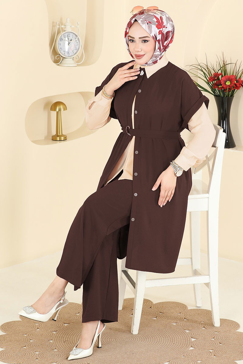 Belden Bağcıklı Gömlek Takım 3274HBS856 Kahve
