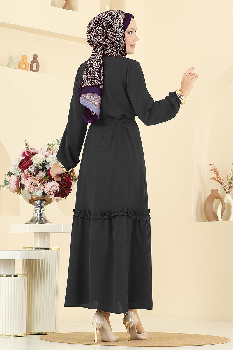 Beli Bağcık Detaylı Aerobin Elbise Siyah