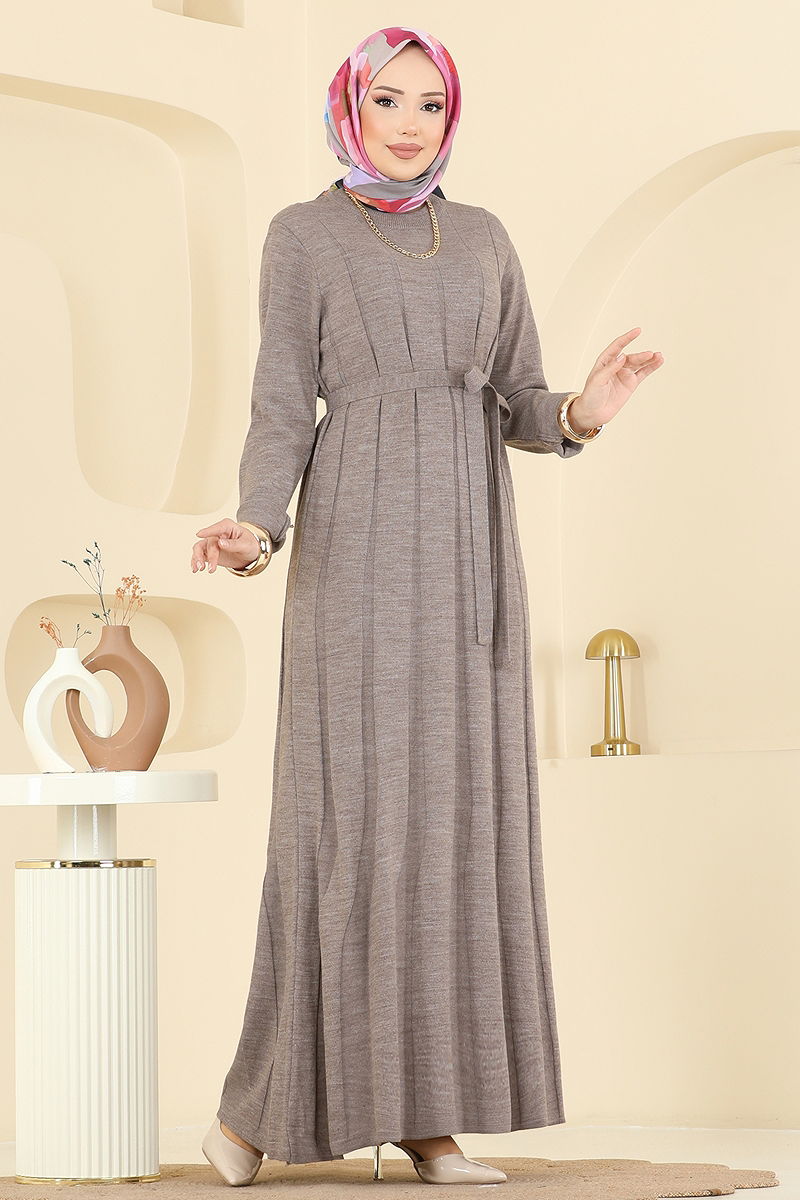 Sonbahar ve kış aylarının vazgeçilmez parçası olan Beli Bağcık Detaylı Elbise, triko kumaşı ve bisiklet yakası ile dikkat çekiyor. Hassas yıkama ile 30 derecede yıkanabilen bu tesettür elbise, hem şıklığı hem de konforu bir arada sunuyor. Bağcıklı bel tasarımı sayesinde farklı bedenlere uyum sağlar. Astarsız yapısıyla hafif ve rahat bir kullanım sağlar. Standart bedende tasarlanmış olan bu elbise, 36'dan 42 bedene kadar uyumludur.