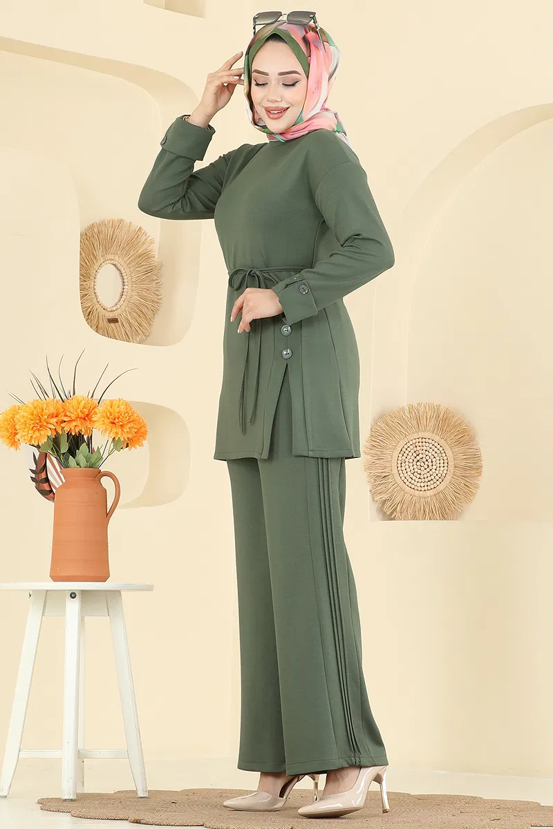 Beli Bağcık Detaylı Takım Haki