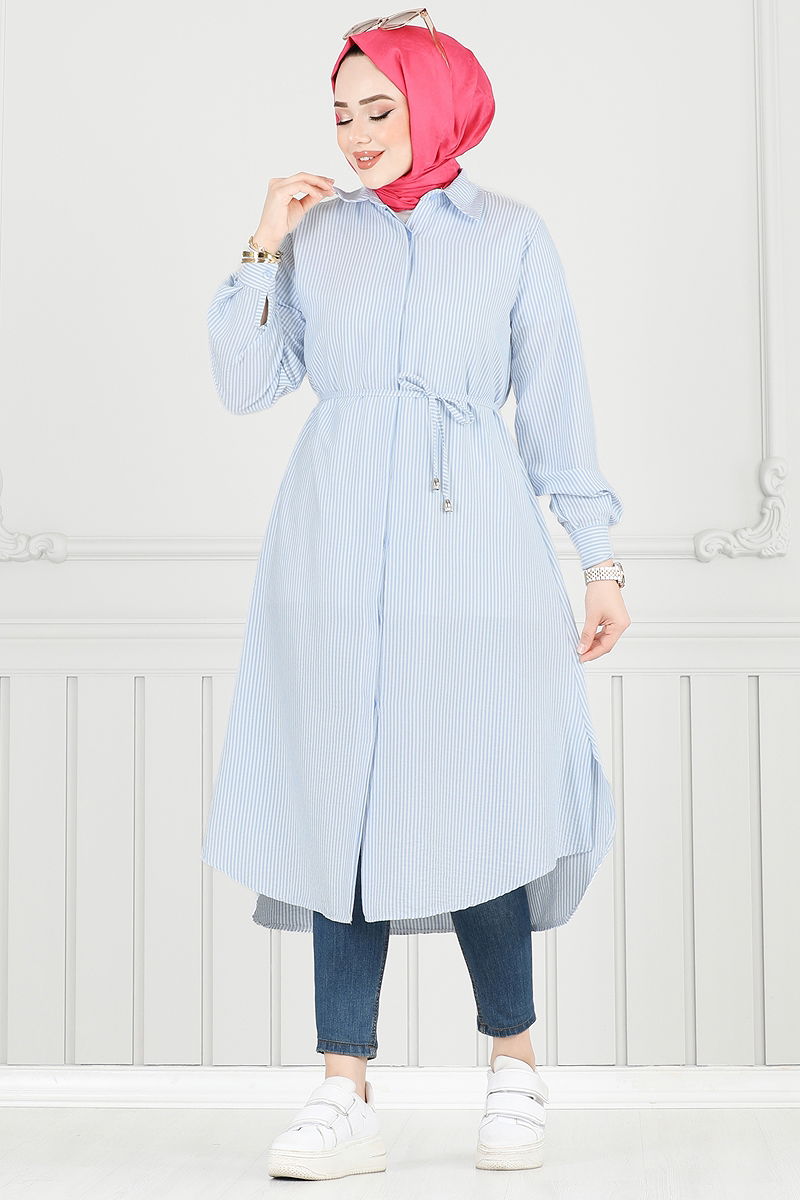 Ürün Özelliği : Yeni sezon tesettür moda ürünüdür. Ürün Gömlek yakadır. Ürün Gizli düğmelidir. Tunik yandan yırtmaçlıdır.. Astarsızdır. Kemer ürüne dahildir, isteğe bağlı kullanılmayabilir. Manşet düğmeleri aktiftir. Konsept fotoğraf çekimlerinden dolayı üründe ton farklılığı olabilir.
